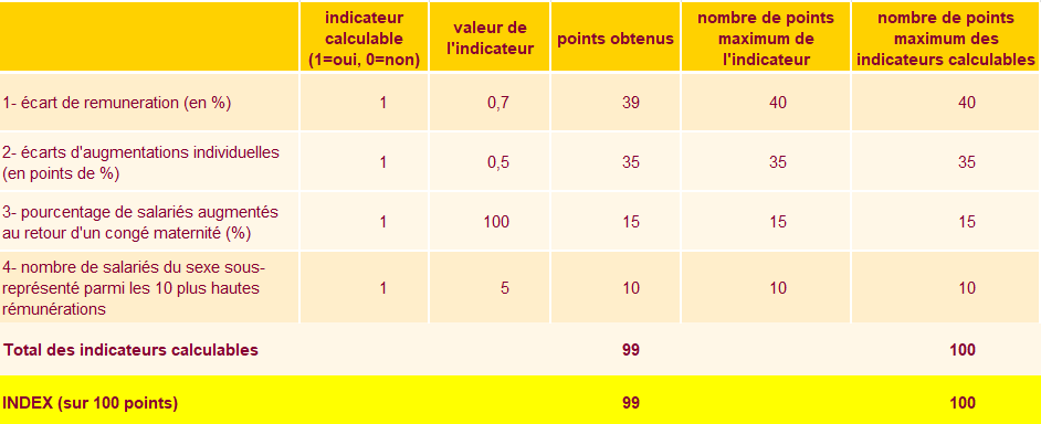 INDEX DE L'EGALITE PROFESSIONNELLE : 99/100